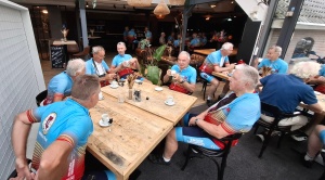 Deze rit werd gereden op zondag 21 juli naar Tijsterman in Nieuwkoop waar een ieder met genot smikkelde van de appeltaart met koffie welke was aangeboden door de familie van Gerard. Hiervoor veel dank namens een ieder die erbij was. Ook al was het deze keer een regenrit, iedereen dacht met veel (fiets)plezier terug aan de mooie ritten met Gerard. Om nog eens rustig terug te kunnen kijken is er onderstaande fotoimpressie.